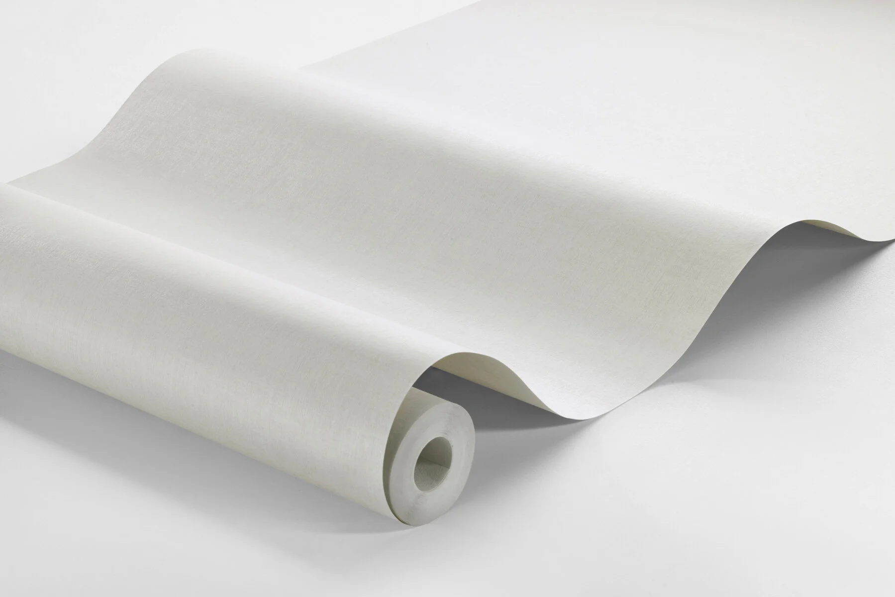 Här ser du den enfärgade tapeten Vega i en mild vit färgställning som drar lite åt grått. Intrycket på väggen blir en mjuk, vit nyans som känns varm och välkomnande och ger rummet en härlig rymd.