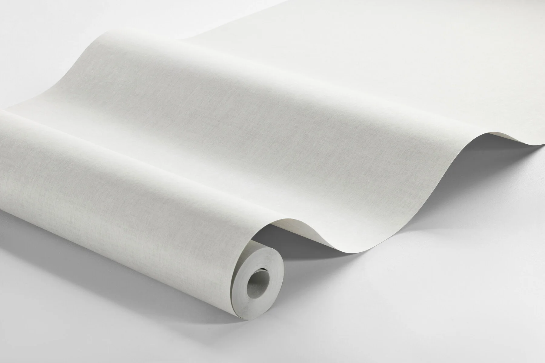 Här ser du den enfärgade tapeten Vega i en mild vit färgställning som drar lite åt grått. Intrycket på väggen blir en mjuk, vit nyans som känns varm och välkomnande och ger rummet en härlig rymd.