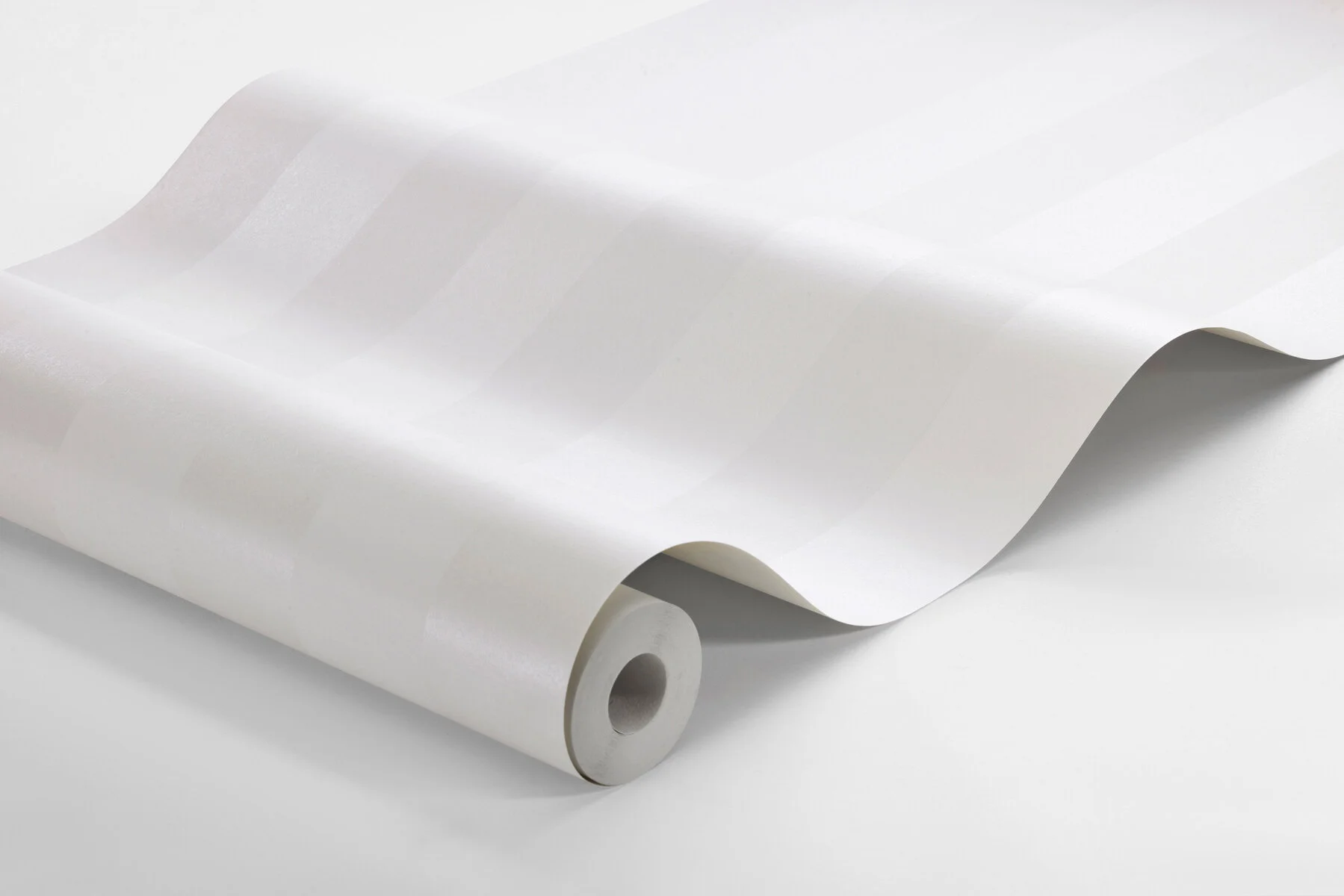 Denna vita, bredrandiga tapet passar fint i vardagsrum, hall, arbetsrum eller var helst annars du vill ha en ljus vägg med vackert skimrande effekt.